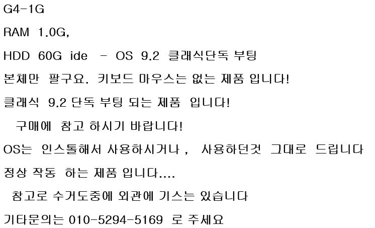 우선 갖고 있던 매킨토시 <파워 맥 G4> 컴퓨터가 부팅이 되지 않으면서 같은 기종의 G4를 12만원을 주고 중고로 구입하게 된다. 그렇지만 이런 가격은 예전에는 어림도 없는 저가였다. 그만큼 가격이 헐값이라는 사실이 무엇보다 매킨토시 컴퓨터로 복귀하려는 내게 천군만마처럼 힘이 되었다.