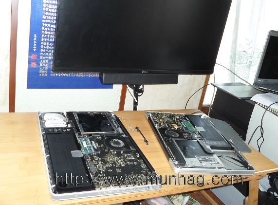 하지만 나는 그런 터무니 없는 가격의 신형 맥북프로 노트북을 구입하는 게 아니었다. 모델이 한참 뒤쳐져 있고 2009년도의 제품 두 대를 구입해 놓고 그것을 분해해서 서로 호환되는 것을 찾아 보려는 것이다.