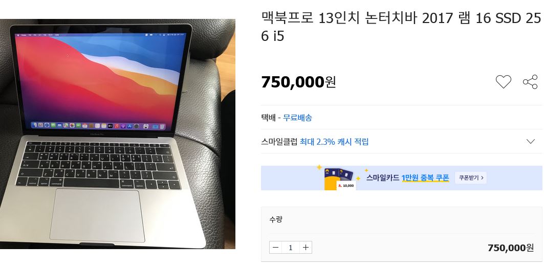 2017년도 맥북프로 노트북 컴퓨터를 구입하다.**