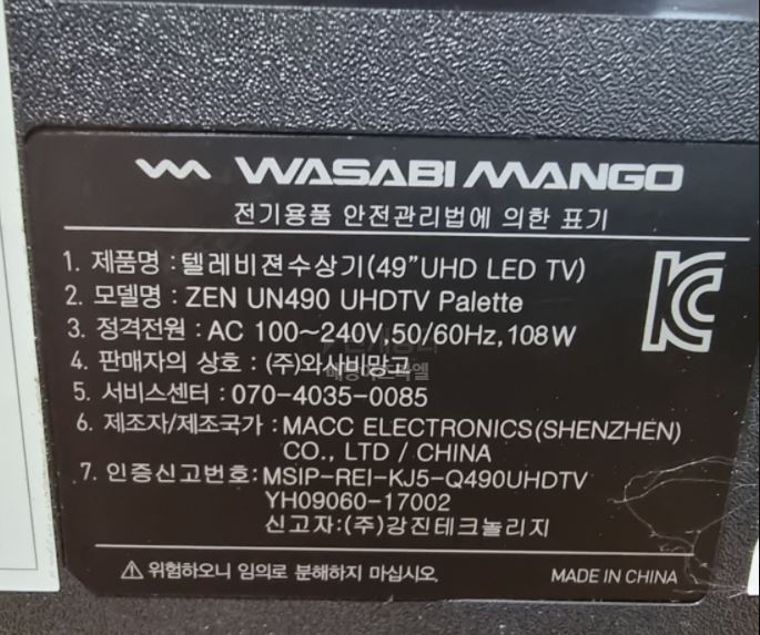 2. 터무니 없는 가격으로 구입한 중고 와사비망고 4K TV 를 어제는 퇴괴원 오남리까지 찾아 가서 직접 가지고 왔다.