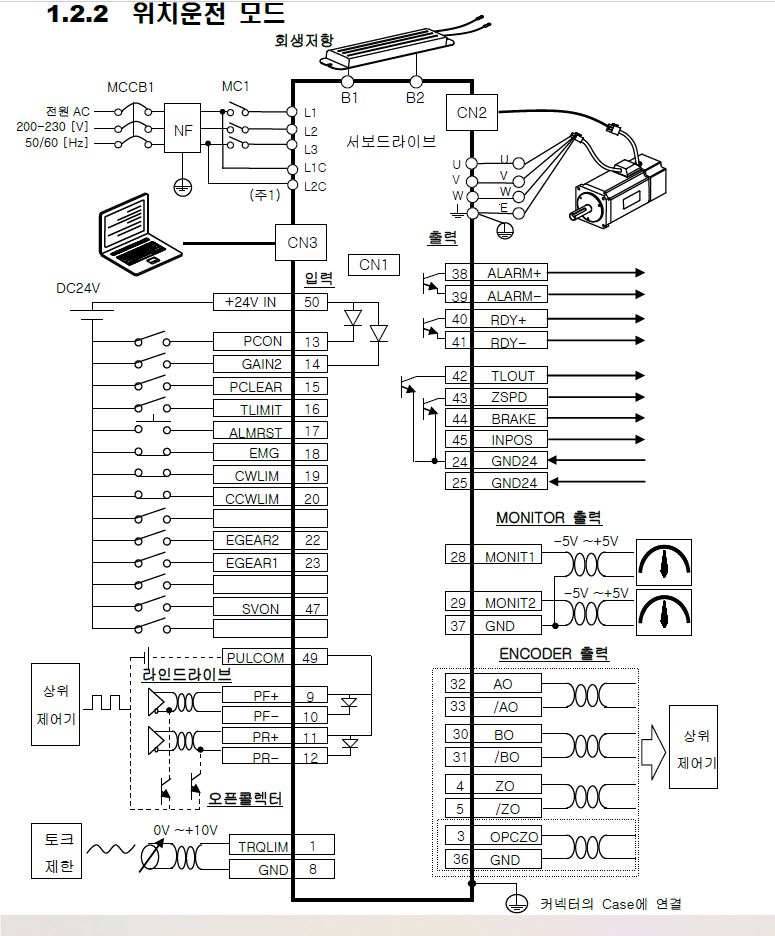 수동으로 작동은 됩니다. 문제는 PLC와 연결하여 작동이 되지 않는 것이지요. 위치운전모드로 제어가 되지 않는 것이지요.