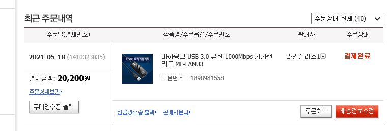 오늘 옥션에서 주문한 컴퓨터 부품 ***