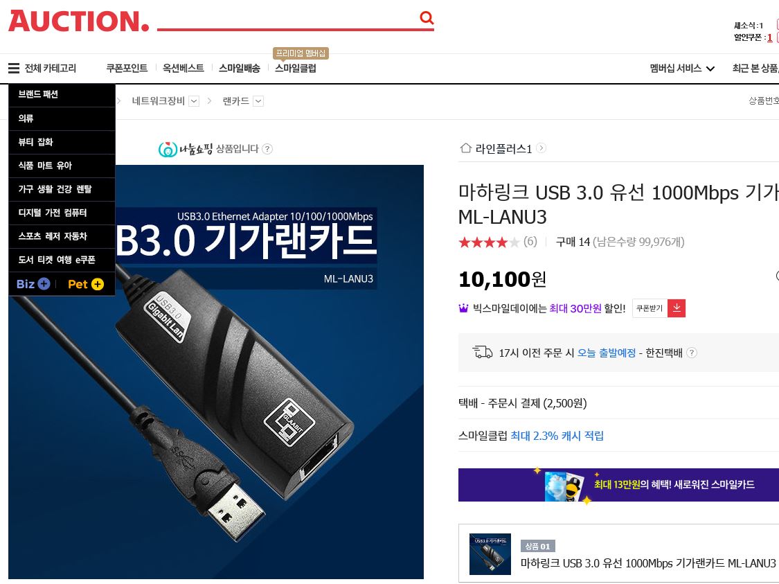 2. 그런데 2014년도 맥용 노트북 컴퓨터에 달려 있는 외부포트에 딱 하지 부족한 것이 있었는데 그것이 랜선을 꽂지 못한다는 점이었다. 그래서 오늘 부품을 구입한 것이 위의 제품이었다.