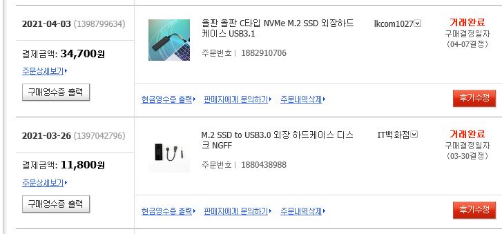 3. 위의 세 번째와 네 번째 구입은 첫 번째 샌디스크를 넣고 컴퓨터 USB 포트에 끼워서 디스크를 인식시키는 오장하드케이스 라는 것이었다. 이것이 없으면 컴퓨터에서 샌디스크 자체만을 읽을 수 없었다. 복사하기 위해서는 이 부품이 필수적으로 필요했다.