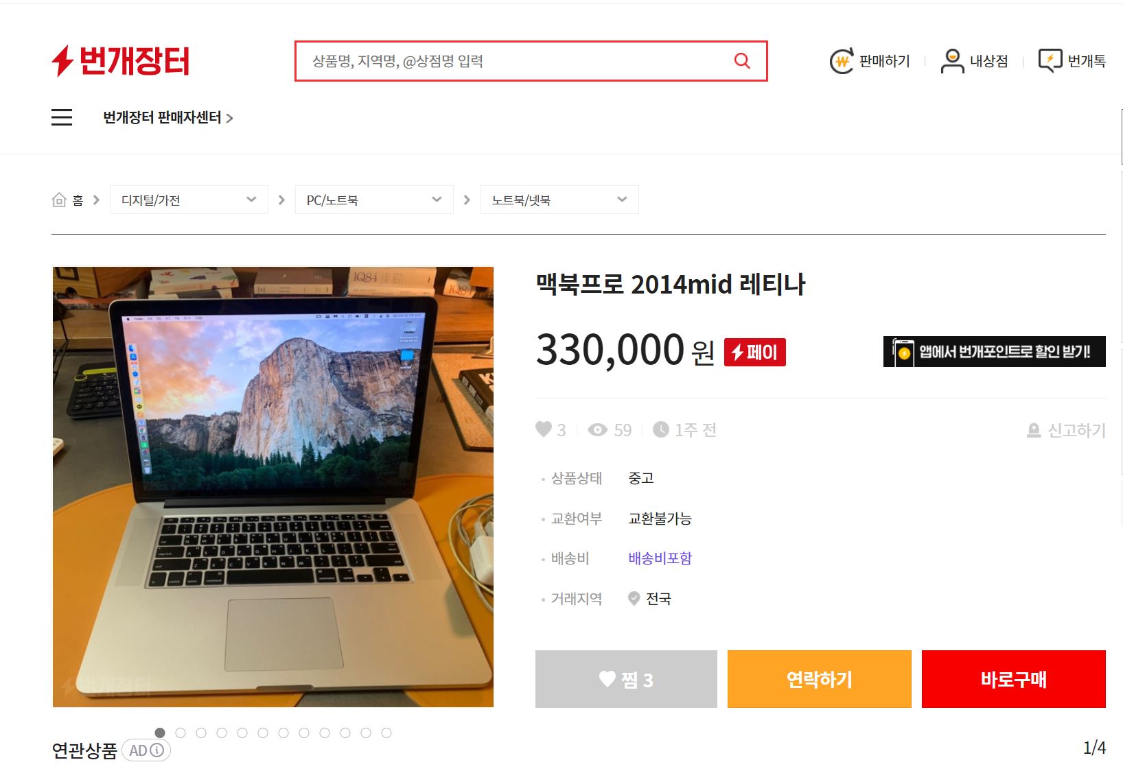 13. <맥북프로 2014> 노트북 컴퓨터를 중고 제품으로 새로 구입했다고 끝나는 게 아니었다. 왜냐하면 위의 두 가지 내용의 제품을 새로 교환할 필요가 있었는데 그것이 상당히 고가품이라는 점이었다. 그렇다고 해서 다 되는 건 아니었다.