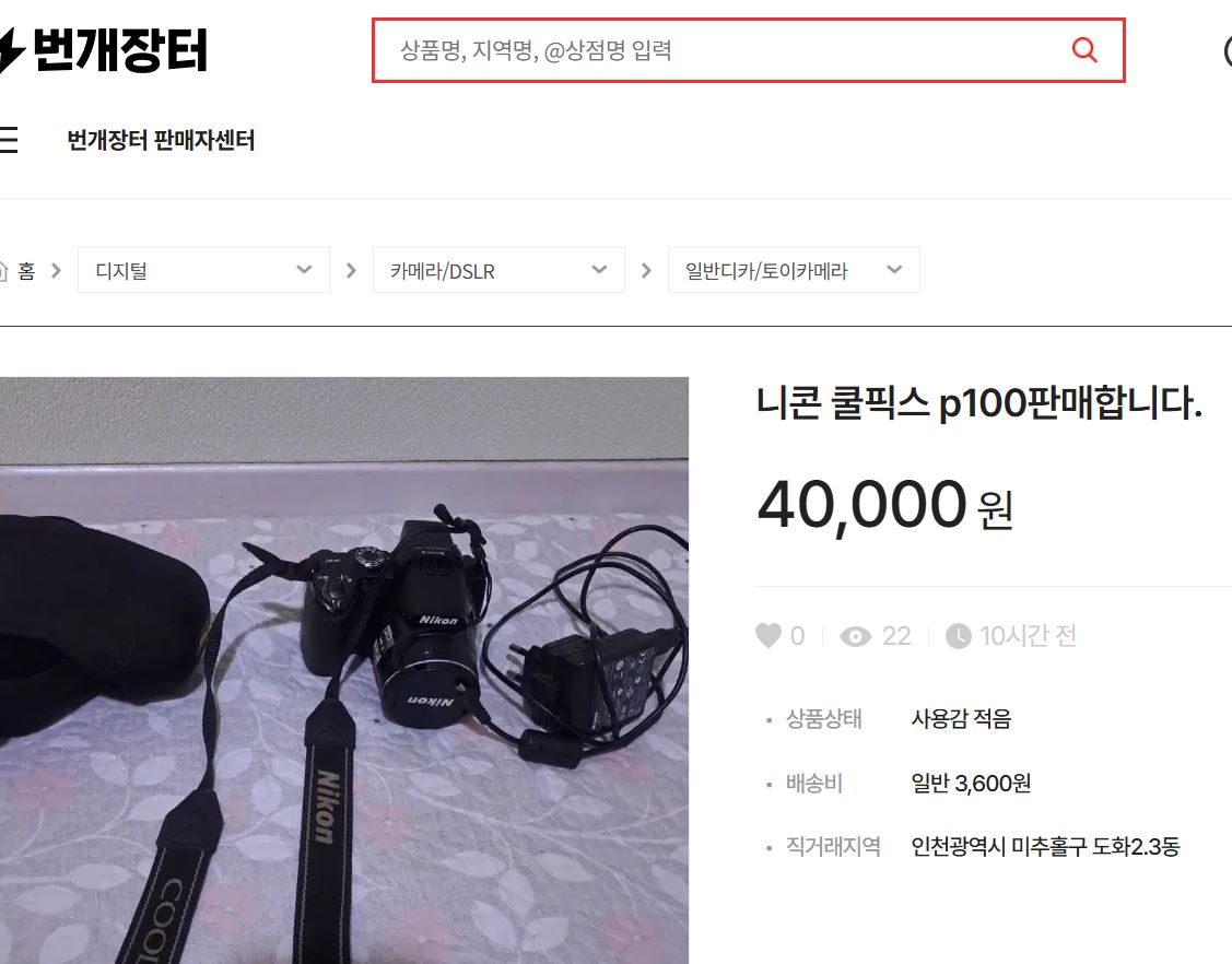 754. 돌고 도는 순리길. 그것도 순리라고 표현하는 게 맞을까? 니콘 P100 카메라를 다시 중고로 <번개장터>에서 구매한다. 먼저 8만원에 구매한 건 판매자 측에서 취소를 하겠다고 해서 어쩔 수 없이 포기했는데 이번에는 4만원 짜리가 올라와서 재빨리 구매한 것이다.