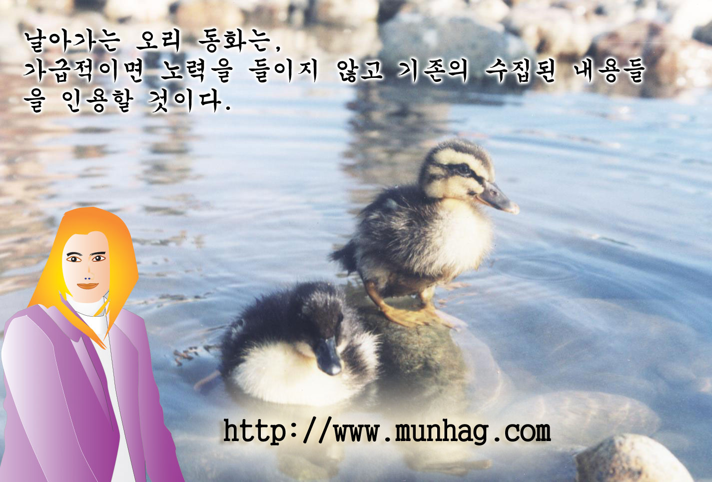1. 가급적이면 '날아가는 오리 동화'의 그림들은 기존에 있는 것을 조금 수정을 하여 올릴 것이다. 또한 너무 많은 시간을 허비하지 말고 가급적이면 이해하기 쉬운 내용으로 풀어 내듯이 옮겨 적는 것만으로도 충분한 분량이 될 수 있었다. 그러므로 새로 쓰는 것보다 기존에 있던 내용을 좀더 효과적으로 활용하리라!