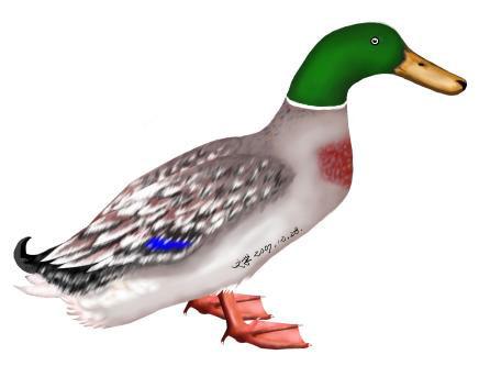 이것 외에 일곱 마리 오리들을 차례로 그릴 생각인데 몇 일간 어떤 방식으로 그려야 할 것인지를 놓고 고심을 햇었다. 그림의 방법에는 일러스트레이터, 페인트, 페인터 샾, 포토샾 등 여러가지 방법이 있는데 어떤 것으로 그릴지를 놓고 무척 고심하였었다. 그렇지만 이렇게 그려 놓고 보니 역시 비트맨 방식으로 그린 그림이 한결 낫다는 생각이 든다. 힘이 들지만...