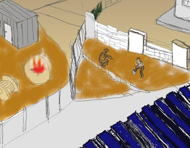 - 먼저 가건물로 지은 창고의 지붕 위에서 내려다 본 전경 -
