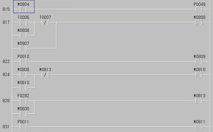 왼쪽은 입력 오른쪽은 출력을 나타낸다. 전기건 전자건 회로도는 간단하였다. ON, OFF 를 조합하여 동작을 시키게된다. 그렇지만 위의 스퀸스 PLC 프로그램을 통하여 기계 제어를 하는 것이다.