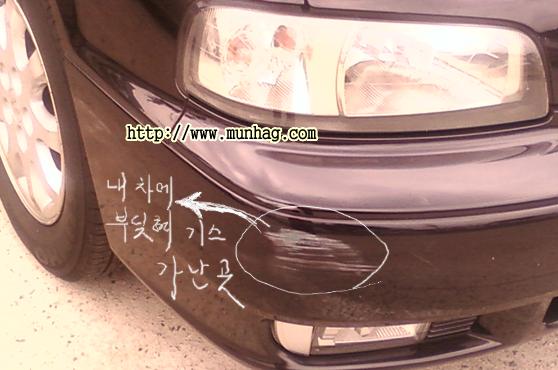 김포의 고촌에 출장을 갔다가 돌아오는 중에 대전역 뒤편의 무료 하상 주차장에서 옆에 있는 승용차의 범퍼에 기스 자국을 남기게 되었다.