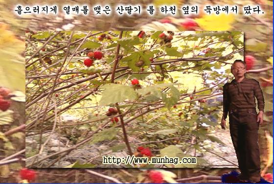 흩으러지게 열매를 맺은 산딸기 를 하천 옆의 둑방길에서 땄다.