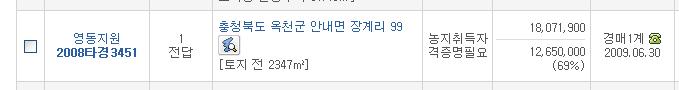 충북 영동 법원에서 경매를 보기 위해 기다리는 동안 또 다시 두근 거림과 설레임이 인다. 엇그저께 일요일에 보고온 현장이 눈앞에 그려지고 있었으며 얼마를 적어 넣을 것인가에 대하여 망설일 때문이었다. 아내는 내게 조금만 더 써 넣으라고 주문을 하였었다. 그렇지만 내 생각은 그렇지 않았으므로 아침부터 말다툼을 했었다.