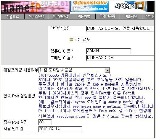 (nameIP 서비스는 유동IP를 사용하는 초고속 통신망 사용자나 전용선 사용자의 컴퓨터에 도메인 이름을 웹상에서 연결시켜주는 웹 도메인 이름 서비스입니다. )