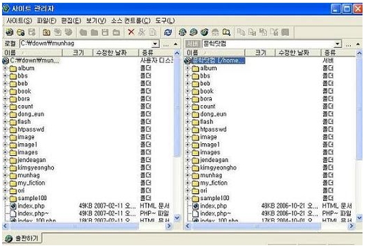 웹상에 자료를 주고 받기 위해서 연결시키는 프로그램. 그밖에 네트워크 상에서 공유할 수 있는 쌈바(smbclient) 같은 프로그램도 실행 시킬 수 있지만 FTP 와는 사뭇 다르다. 그만큼 FTP 연결은 보편화 되어 있으며 유료 계정인 '웹호스팅'과 '포워딩'으로 자신이 '리눅스 서버'를 직접 관리하는 경우에도 절대적으로 필요하다. 웹상에서 내게 제공된 홈페이지에 자료를 올려 놓기 위해서는 FTP 가 주로 이용되는 것이다. MySql의 경우에는 FTP 로 올릴 수 없고 별도의 프로그램이 필요하지만...