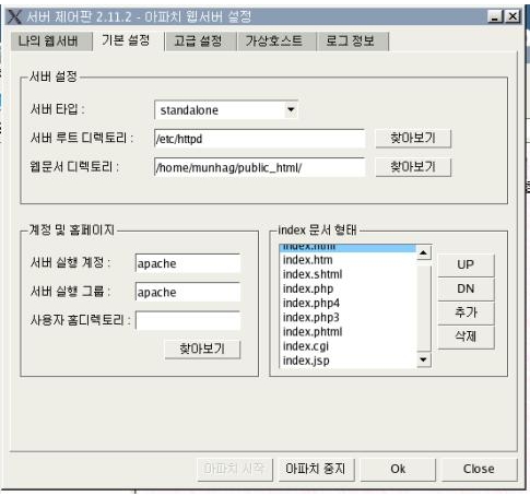 아파치는 웹문서 디렉토리를 임으로 선정할 수 있으며 보여주는 문서의 순위를 차례로 열거하는 순서로 메인 화면을 찾는다.