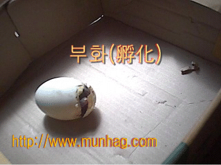 어제 실금이 가고 두 곳이 깨져 있던 알을 부화기 속에서 가장 위에 올려놓았었다. 그리고 너무나 실패를 많이 보아서 이제는 깨트려 주지 않을 작정이었다. 그 안에서 죽든 살든 제 운명(運命)이었으니까. 그러나 내가 귀에 대고,