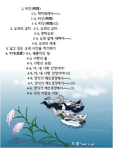 | 95 | 16. 날아가는 오리를 마치며…… 2 | 문학 | 2005.03.01 | 1839 |