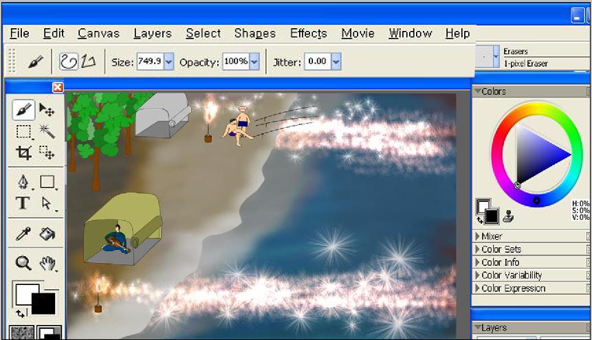 중요한 것은 이렇게 계속적으로 나무 하나를 그려서 옮겨 붙이면 숲이 될 수 있다는 사실이다. 그렇다면 이런 방식이 페이터샾, 포토샾에서도 가능할까?