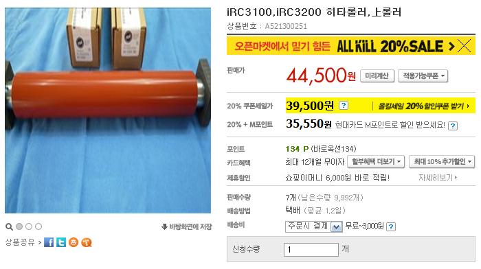캐논 복사기 irc-3200 정착기의 '히터 로우러' 구입