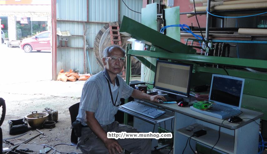 -지관 NC 자동 장착, 배출, 절단 기계의 프로그램을 구성시키기 위해 준비하는 PC를 책상 위에 올려 놓고 기계와 온라인 통신으로 연결을 시도하는 과정. COM1 포트를 이용하여 기계와 연결하게 되지만 신형 PC 두 대가 말썽이었다. 기계와 COM1포트로 연결되지 않았으므로 구형의 PC를 교체하였다. 이 PC는 다행이 프로그램들이 설치되어 있지 않았는데 많은 프로그램이 들어 있는 PC의 경우 충돌 원인이 상존하여 연결되지 않는 것 같았다. 특히 타블렛 보드를 COM1 포트로 연결하여 사용하고 있었던 컴퓨터가 연결되지 않는 것 같았다. -