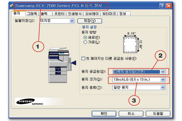 삼성 scx-7145 복사기를 사용할 수 있는 방법은 이제 그것 밖에 없었다. 정해진 종이 사이즈 중의 하나에 맞출 수 밖에 없다는....