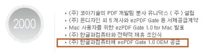 유니닥스 ( http://www.unidocs.co.kr/korean/main/main.php )의 홈페이지 연혁에서 한컴에 OEM 으로 납품한 것을 찾아 냈다.
