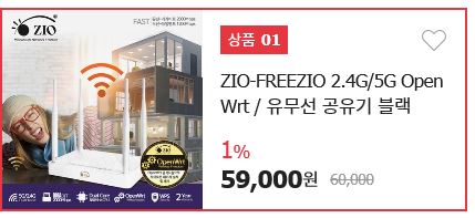 5. 오늘 이 제품이 단종되어 옥션에서 59,000 원을 주고 <ZIO-FREEZIO 2.4/5G Open Wrt> 를 두 대 더 구매하였습니다. 그 전에도 계속 지오 공유기 제품을 두 대씩 구매하여 사용해 왔습니다. Zio-5500ac 전에도 구매한 적이 있고... 홈페이지에서 새로 구매한 Zio-5500ac 제품에서 서버 인식문제로 김태완이라는 이름으로 질문한 적이 있습니다.