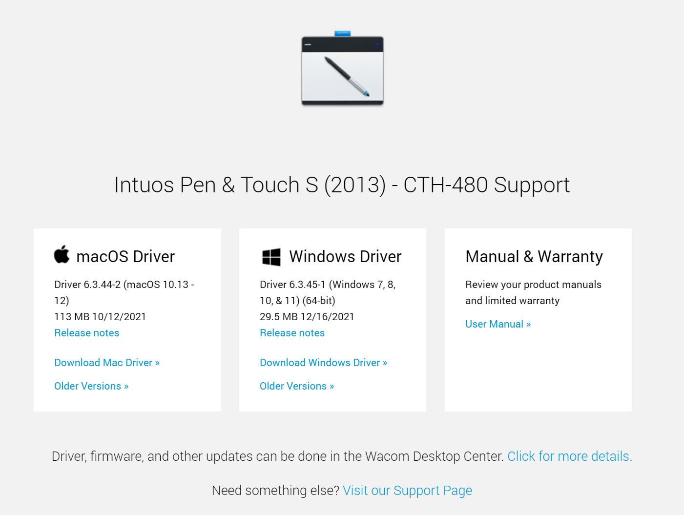 ---> DriversDrivers | Wacom (https://www.wacom.com/en-kr/support/product-support/drivers )