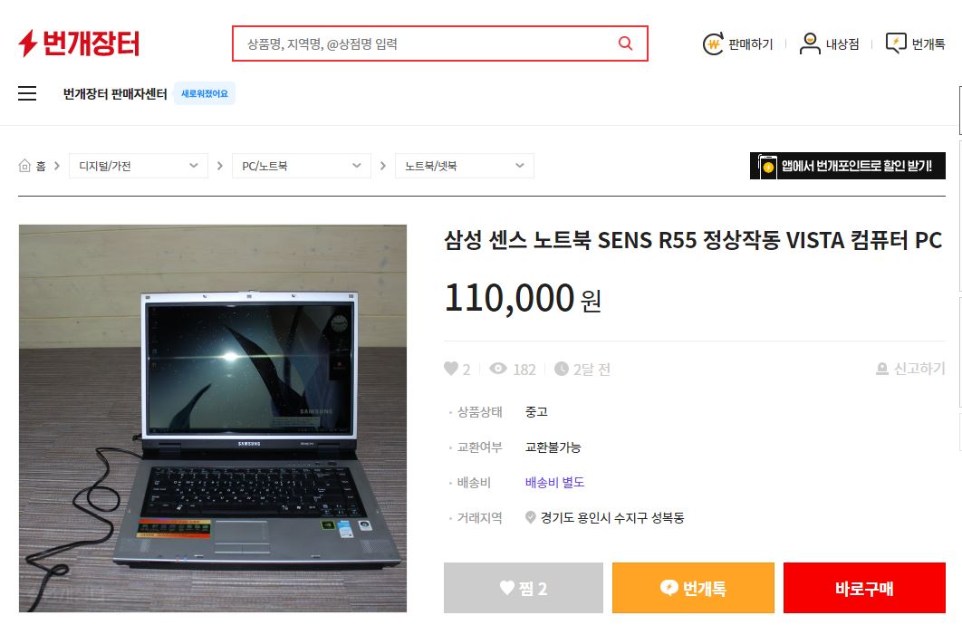 35. <삼성 센스 P55 노트북 컴퓨터> 를 중고로 구하려고 백방 노력했지만 소용없었다.