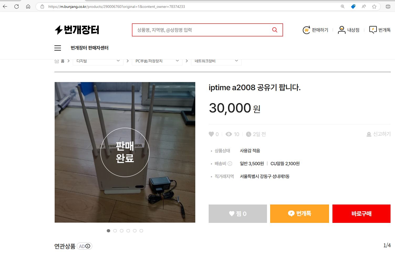 그 뒤, 번개 장터에서 두 대의 중고 공유기를 구입하게 되었는데 현 싯가는 두 배 세 배나 비싼 IP Time 공유기였다.