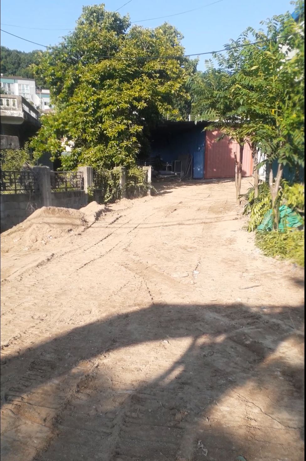 그래서 아직 시멘트 포장을 하지 못했었는데 이웃집 식당 주인과 대화를 하기 위해