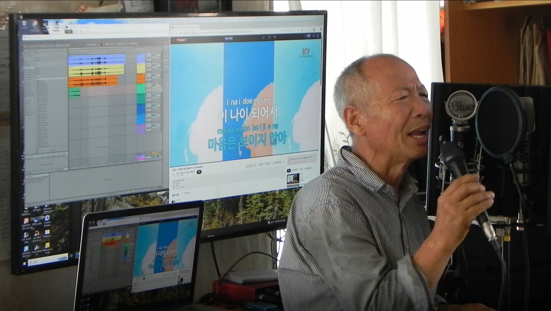 우선 첫 번째 유튜브의 경우 '김포 누산리 출장'를 가기 전 날 녹화를 했었다. 디지털 카메라로 실제 노래 부르는 상황을... 그와 함께 에이블톤으로 녹음을 여덟 곡 녹음하게 되었지만 급한 마음에 저장을 하지 않고 컴퓨터를 끄려고 나왔다가 모든 자료들을 컴퓨터에서 잃고 말았다. 하지만 그 때 마지막에 올린 저장한 곡을 에이블톤으로 듣게 되었는데 상당히 만족하였다.