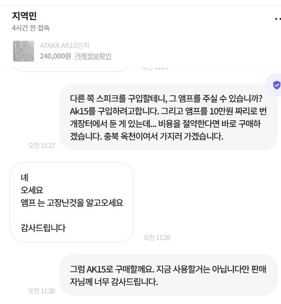 이처럼 지금은 확실한 견해 차이를 갖게 되었지만 그것을 확인하여 결과를 보기 전까지는 믿을 수 없었다. 그것이 아직도 끝나지 않은 상태였다. 맘에 드는 AK 15 스피크를 구입해 두긴 했지만 그에 맞는 앰프를 찾는 게 힘들었다. 가격면에서 고가를 구입할 수는 없었다. 그러다보니 25만원의 선에서 마침 미리 봐 둔 앰프를 번개장터에서 구입하였는데 오늘 아침 택배로 배달이 되었다.